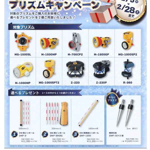 ※プレゼントのご指定がない場合は①DM用ピンポールDMP-9(1組)と標準石付DMP-50×2個のセットをお付け致します。