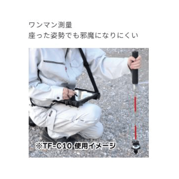 【特長】 ■ワンマン撮影で端末を腰、胸に装着することでプリズム計測の負担を軽減。■ネックストラップが付属で安定感抜群。 ■端末画面が見やすい角度へ調整可能。位置決め後は自立。 【仕様】